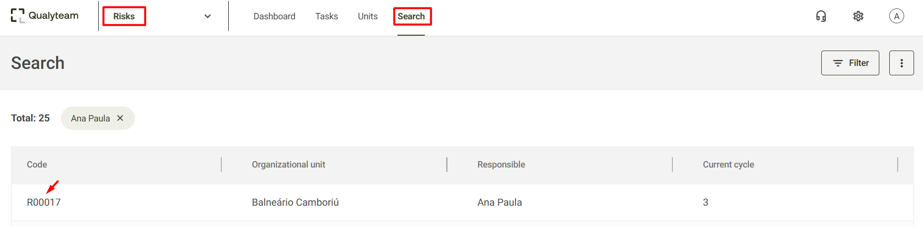 Access the Search screen and locate the risk you wish to delete: