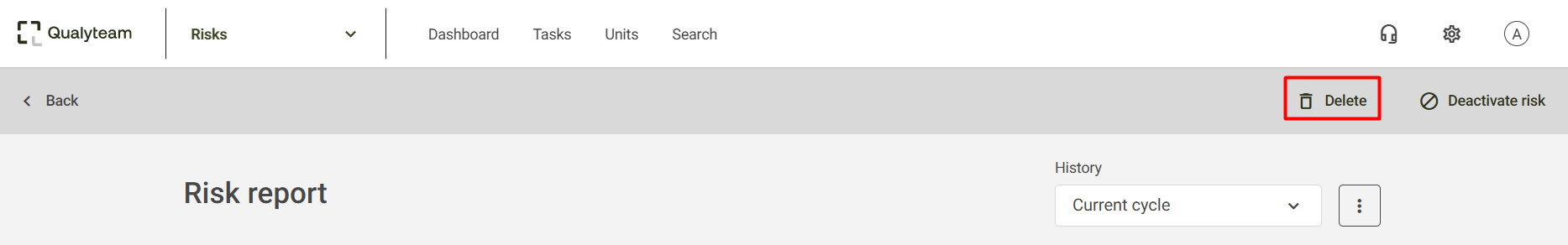 On the Risk Report screen, simply select the Delete option: