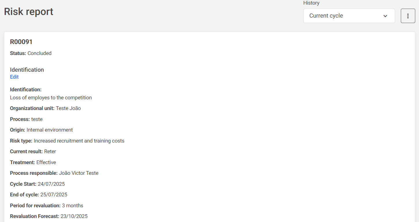 On the right side, under History, you will find a record of all cycles and reassessments carried out for the risk over time.