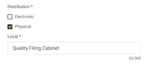 When one of these options is selected, the Local field will be displayed. In this field, indicate where the document can be found. For electronic documents, enter the website or access path. For physical documents, specify the storage location.