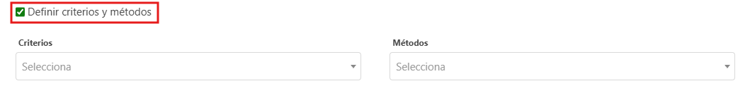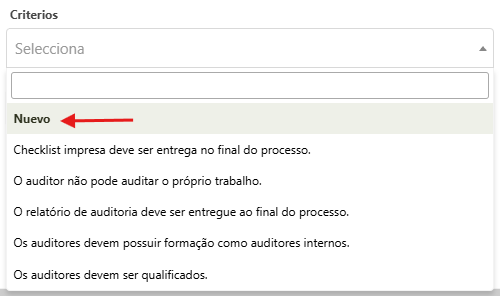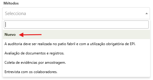Para registrar nuevos ítem en el campo de criterios y métodos, cree un nuevo programa de auditoria y marque la opción Definir criterios y métodos.