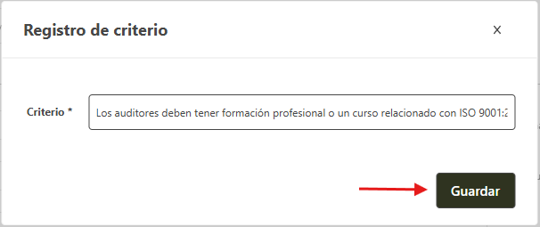 - En el campo Criterio ingrese el ítem y haga clic en Guardar.