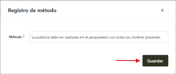 - En el campo Método ingrese el ítem y haga clic en Guardar.