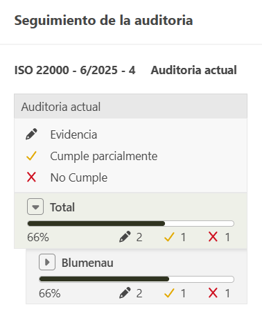 Haga clic sobre el pendiente Seguimiento de la auditoria para abrir la ventana de seguimiento: