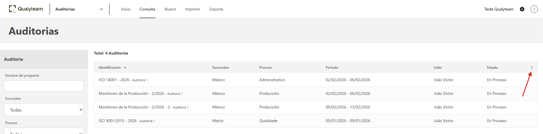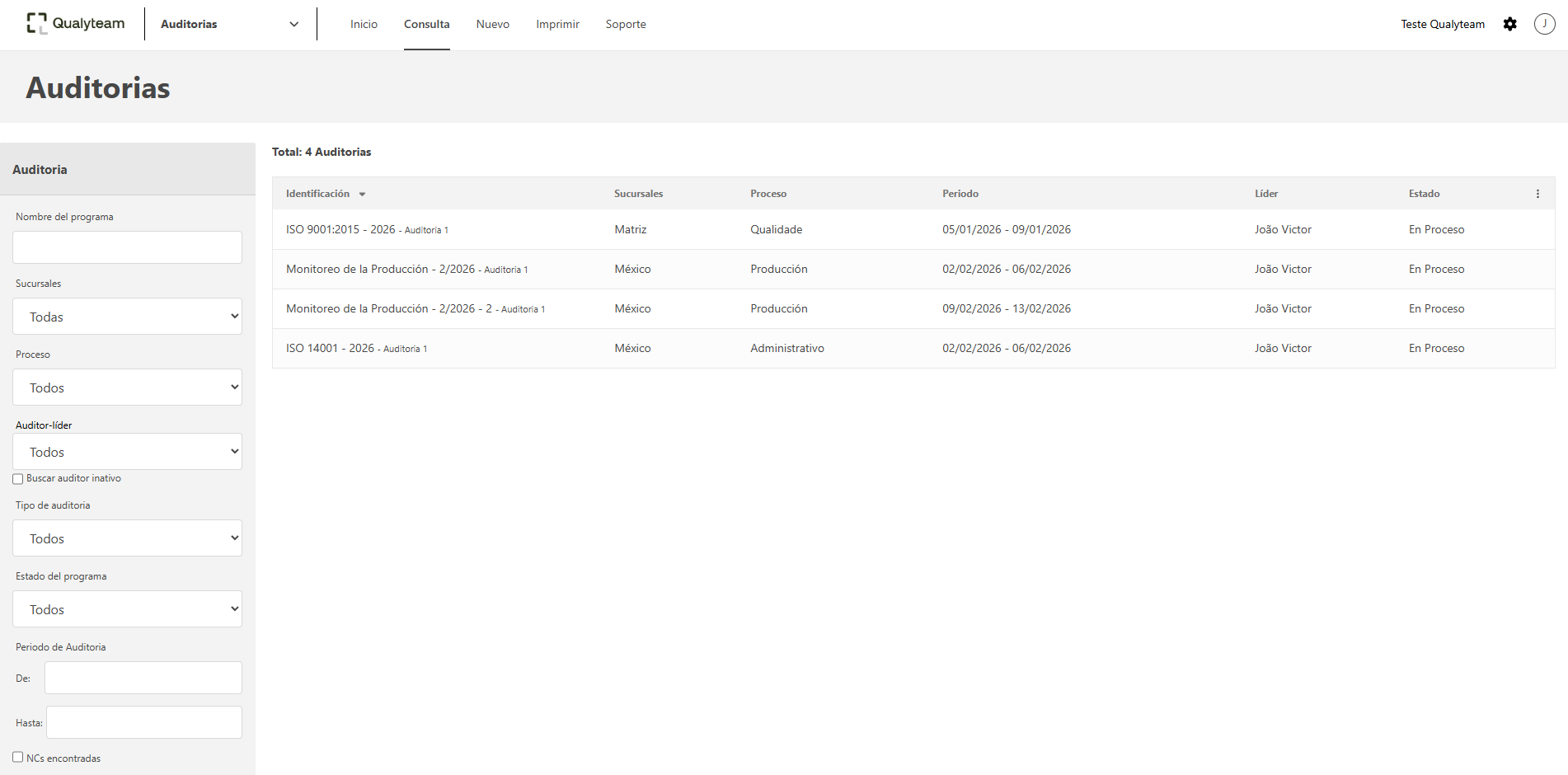 - El campo Auditor-líder, filtra por el usuario que fue el auditor líder del programa de auditoria.
