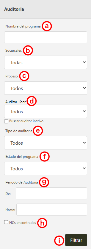 - Todos: busca por todos los programas de auditoria, independiente del estado.