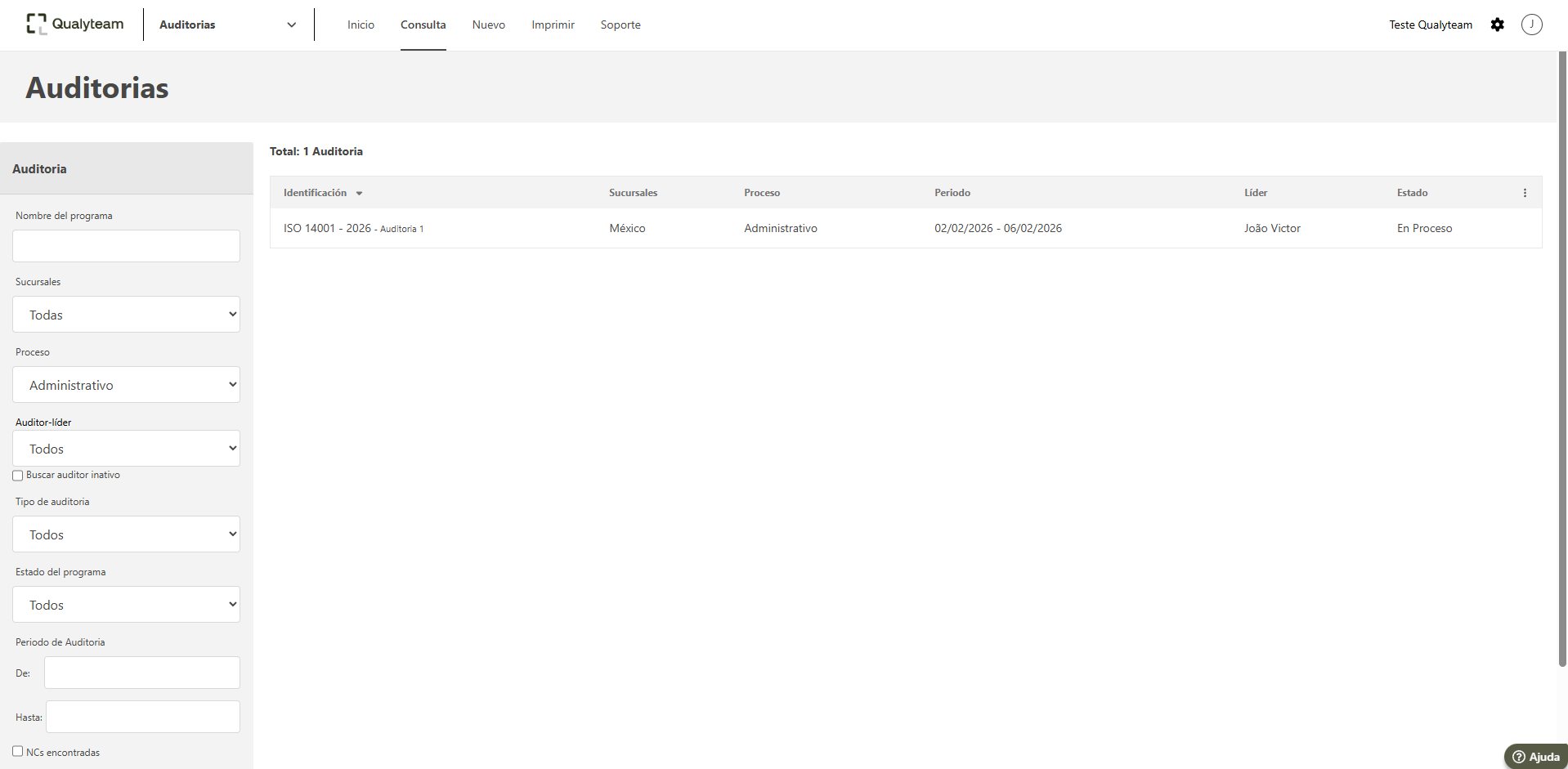 - En la ventana de consulta, se muestran todas las auditorias registradas.
