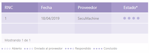 Al final de la tabla el sistema muestra la leyenda de los estados en que el RNC puede estar.