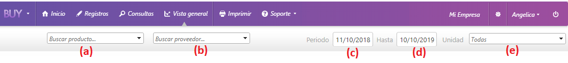 Al lado de los campos del periodo puede filtrar por Unidad.