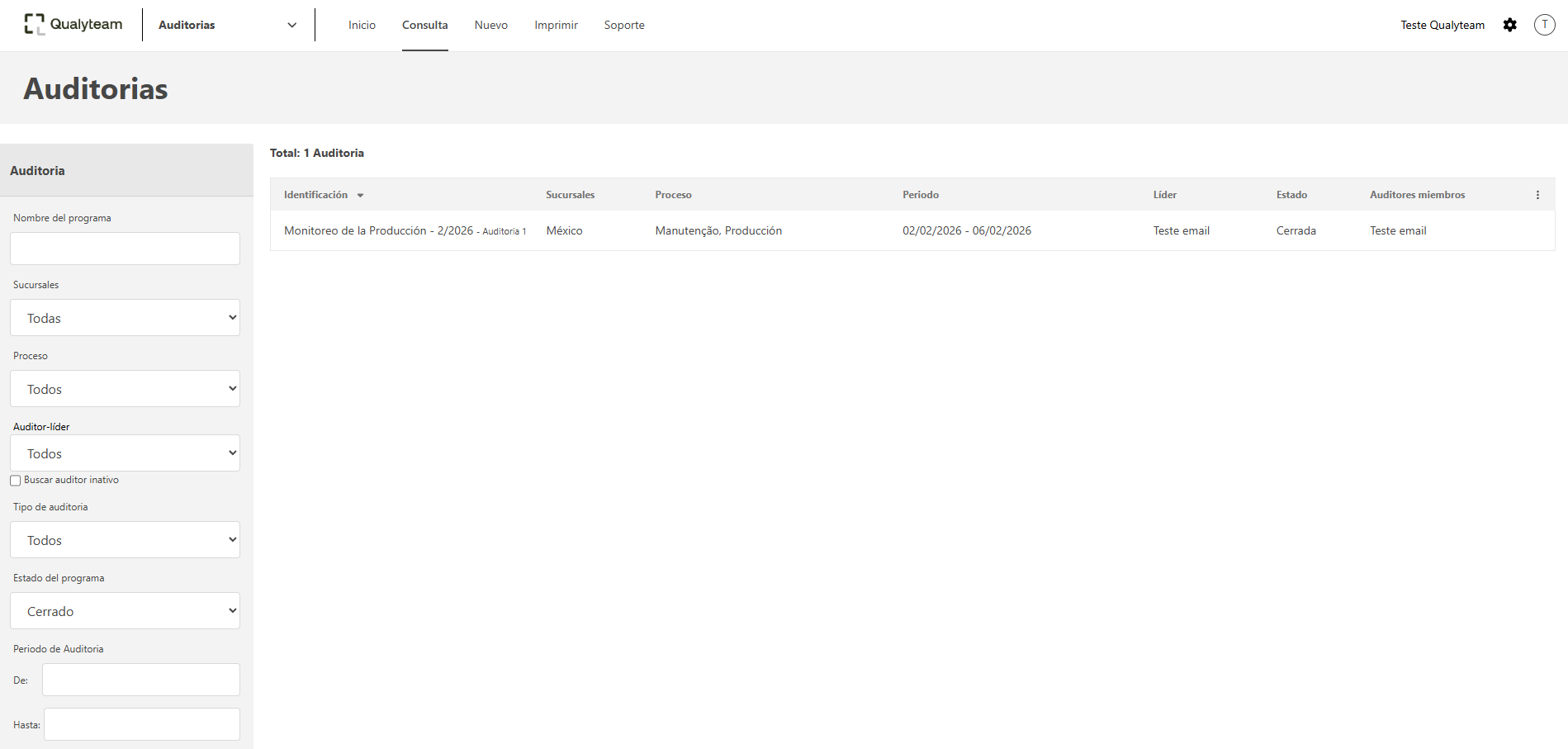 Ingrese a la ventana de consulta y localice la auditoria que desea eliminar