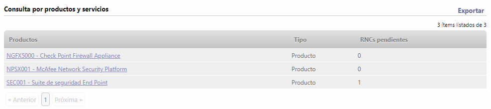En la lista de productos y servicios mostrada puede hacer clic en el ítem de su interés para visualizar los detalles de un producto o servicio.