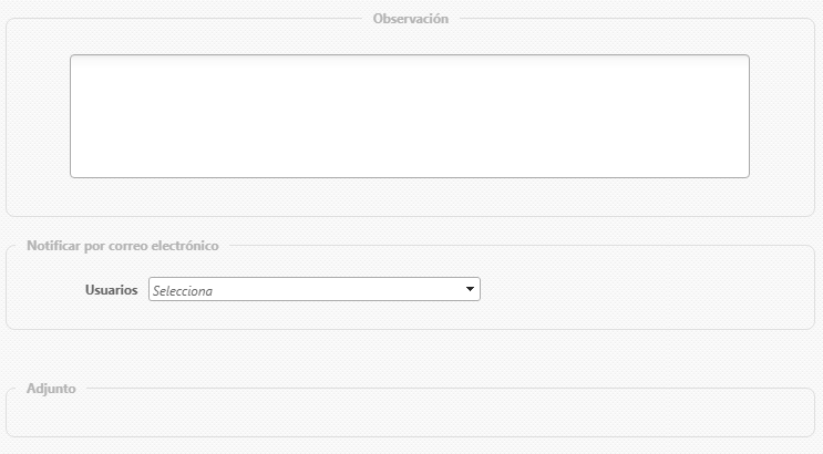 Si se ha ingresado alguna Observación, Adjunto o algún Usuario para notificar por e-mail, el sistema listará la información, conforme a la siguiente imagen.