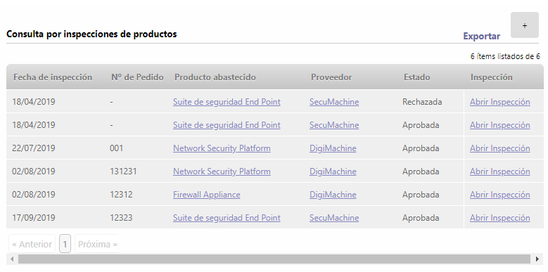 La segunda forma de consultar el historial de inspecciones de los productos/servicios, como se indicó anteriormente, es ingresando directamente en la ventana de consulta por inspección, como se explica en el siguiente articulo: Consultar inspecciones de productos/servicios.