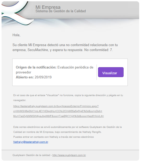 Por medio del link que se recibe en el e-mail, el proveedor tiene acceso a los detalles de la notificación y verificar su desempeño con la empresa.