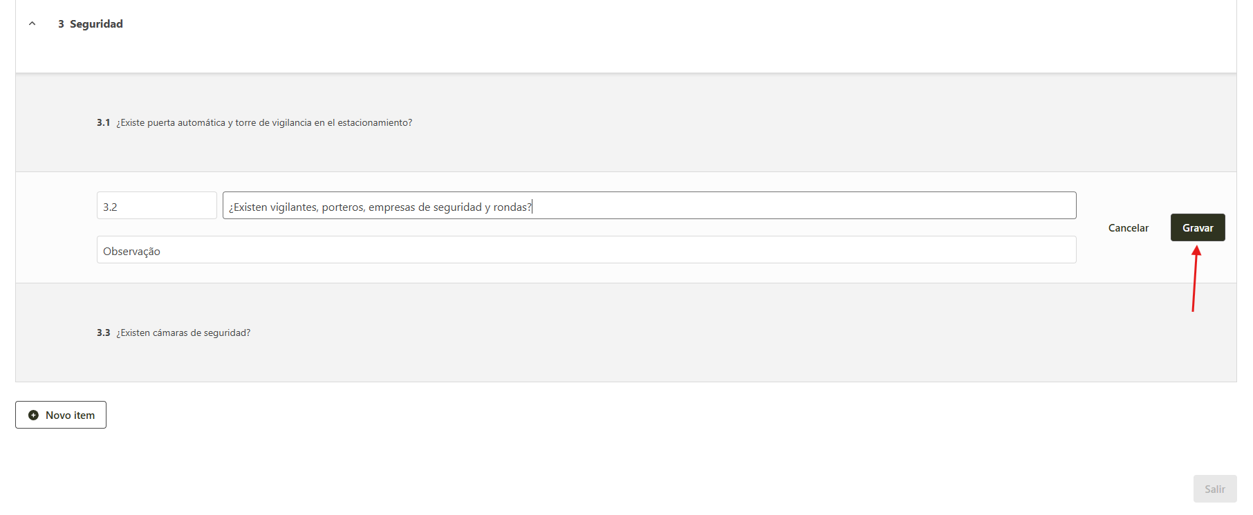 Si realiza alguna edición en un ítem ya registrado, haga clic en Guardar, para salvar el cambio.