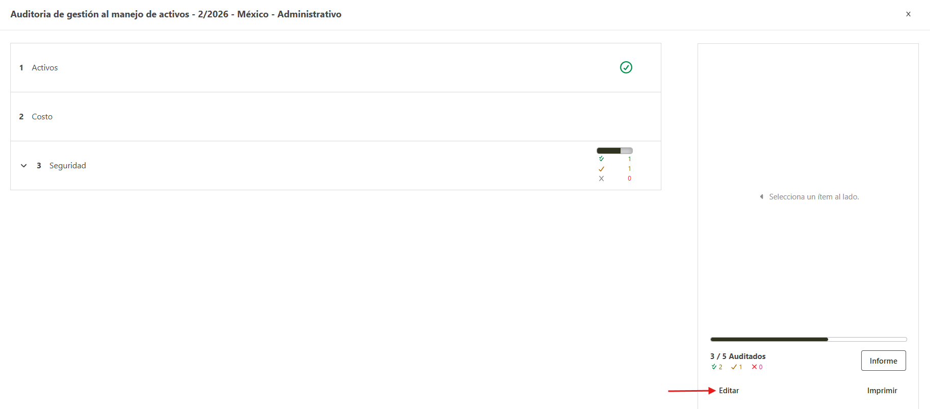 3ª forma de edición: editar por la ventana de seguimiento de la auditoria