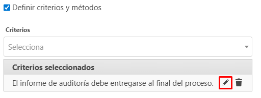 Editar los criterios y métodos por medio de la ventana de edición de auditoria