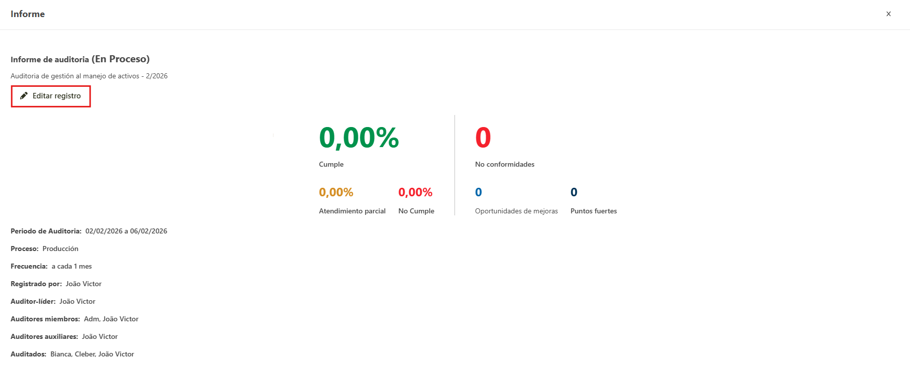 - Na ventana de detalles del programa de auditoria, hacer clic en Editar registro.