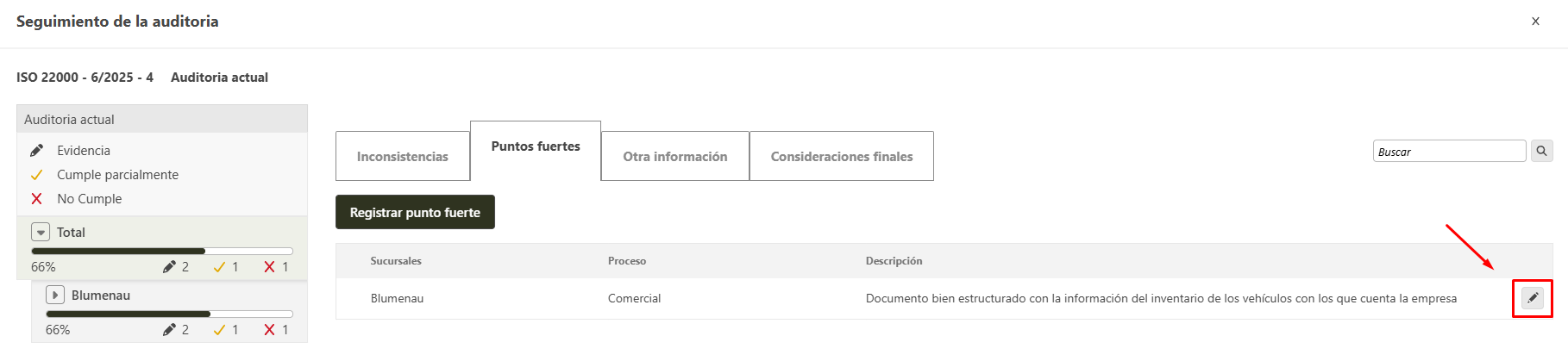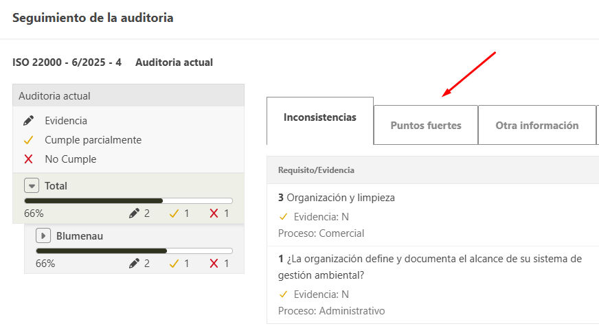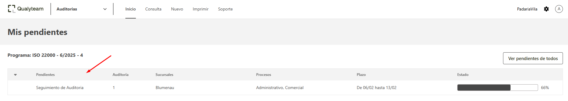 - En la ventana de inicio, localice el pendiente de seguimiento de la auditoria.