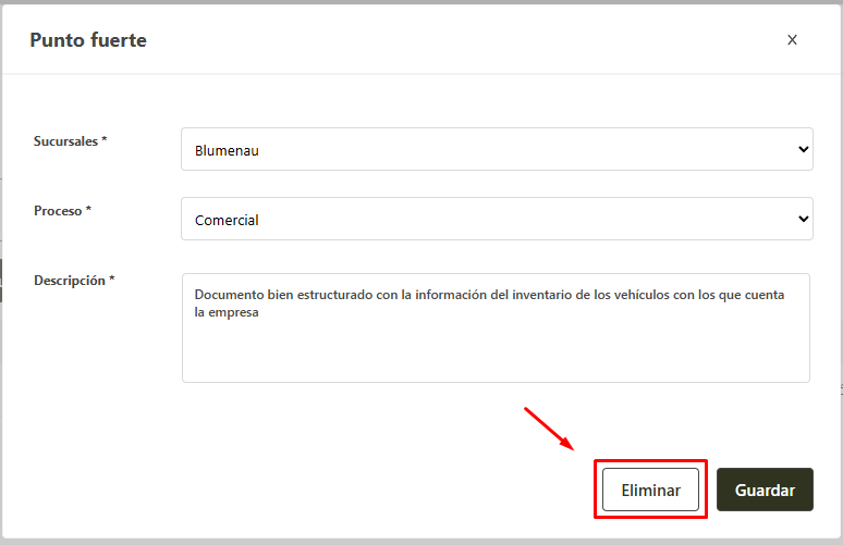 Para eliminar un punto fuerte siga los pasos a continuación: