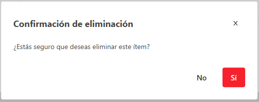 - El sistema solicita la confirmación de la eliminación, hacer clic en Si para confirmar o de lo contrario haga clic en No.