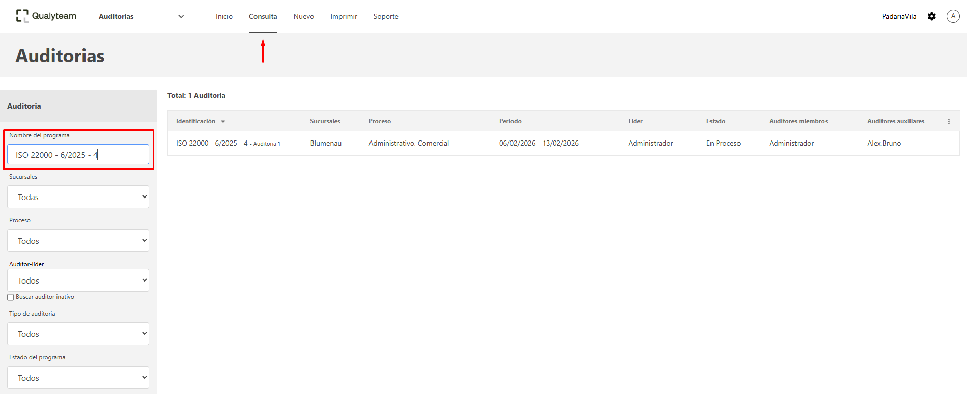 - Ingrese a la ventana de consulta y localice el informe que desea compartir.