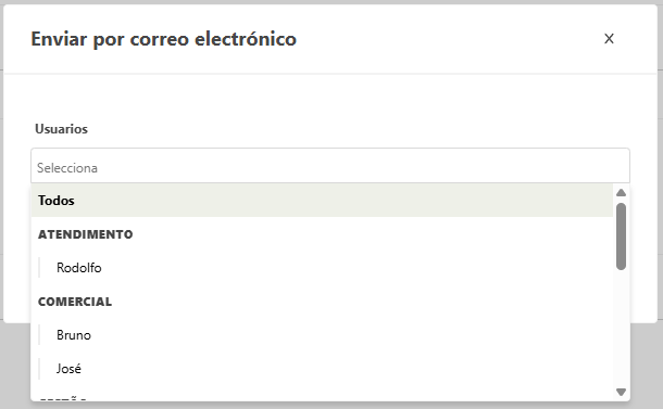 - Se abre la ventana para seleccionar los usuarios que desea reciban la notificación vía e-mail.
