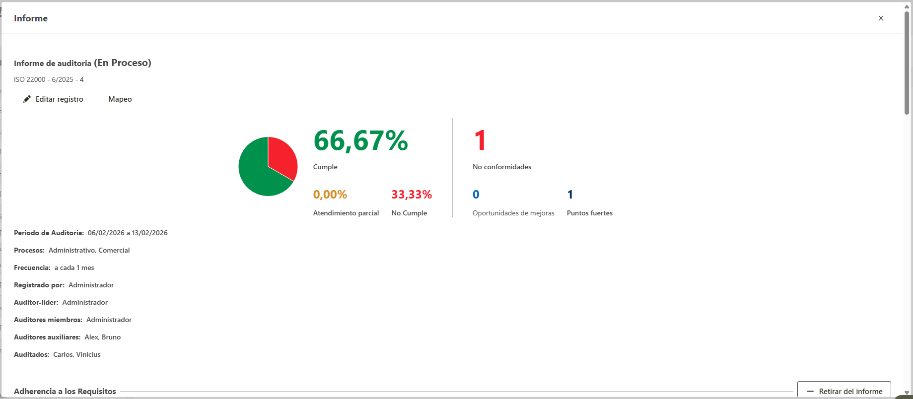AUDITOR permite compartir con otros usuarios el informe de una auditoria a través de la funcionalidad Enviar un informe por e-mail. A continuación se detalla el proceso a realizar.