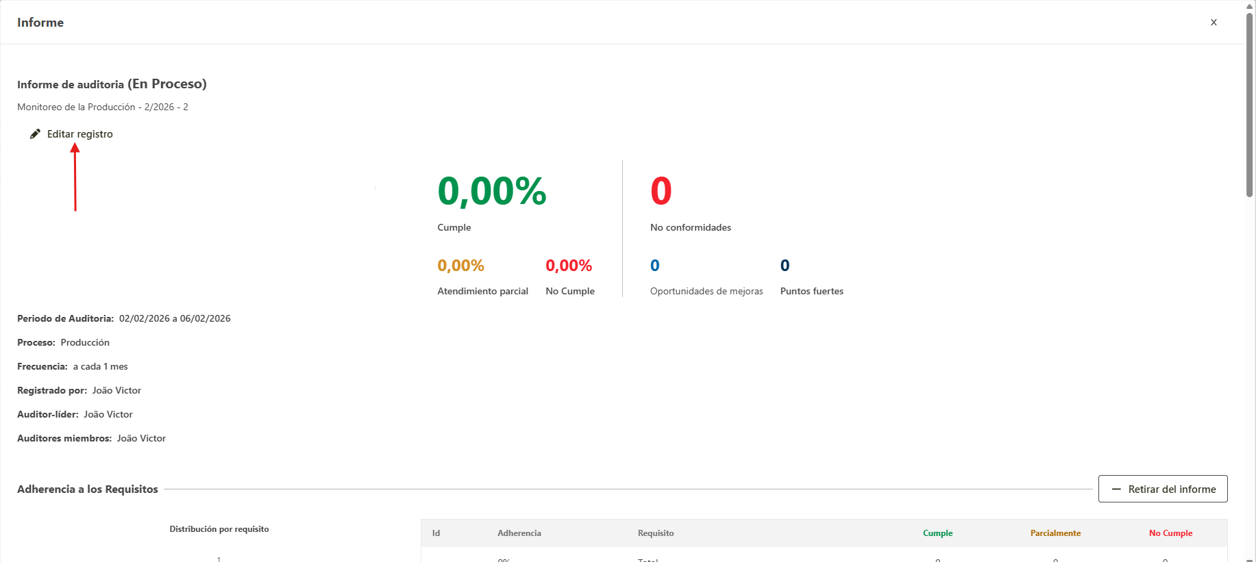 - Al abrir la ventana del informe,hacer clic en el botón Editar registro.