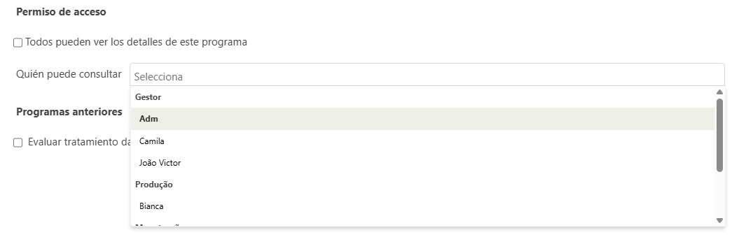 Esta funcionalidad permite que usuarios y/o niveles de usuarios específicos puedan visualizar las informaciones incluidas en el informe de auditoria, es decir, quién esté seleccionado en el campo tendrá permiso de acceso y quién no esté en la lista no podrá consultar esos datos.