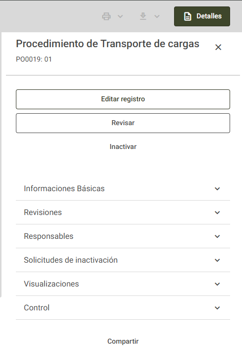 El botón Inactivar, permite solicitar la inactivación del documento. Para más informaciones, lea este artículo.