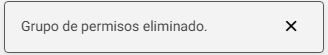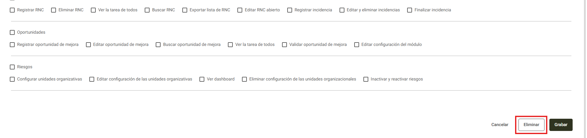Después del registro del grupo de permisos, el sistema permite que estos sean eliminados en caso de que dejen de existir o incluso hayan sido registrados incorrectamente.