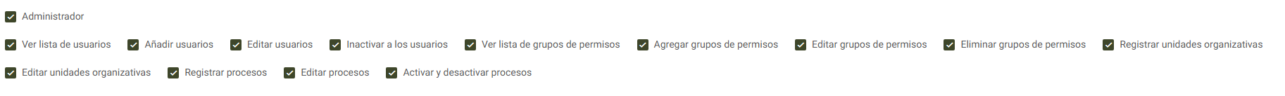 Eliminar grupos de permisos: Permite que el usuario elimine grupos de permisos que ya no se estén utilizando.