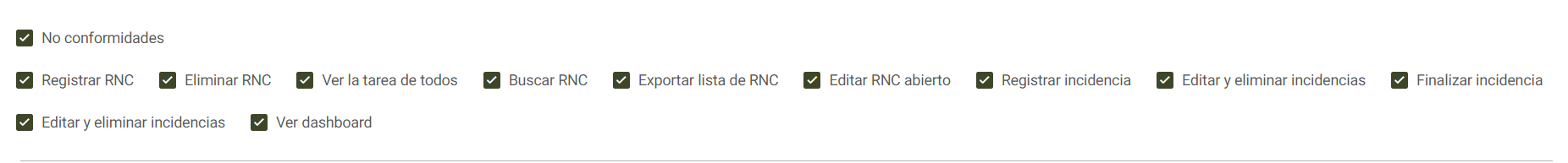 Ver dashboard: le permite restringir o conceder permisos para ver el dashboard del módulo de no conformidades.