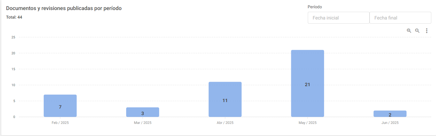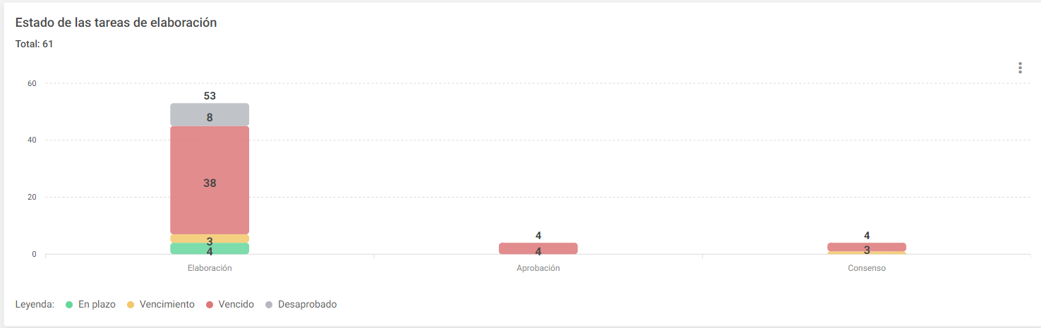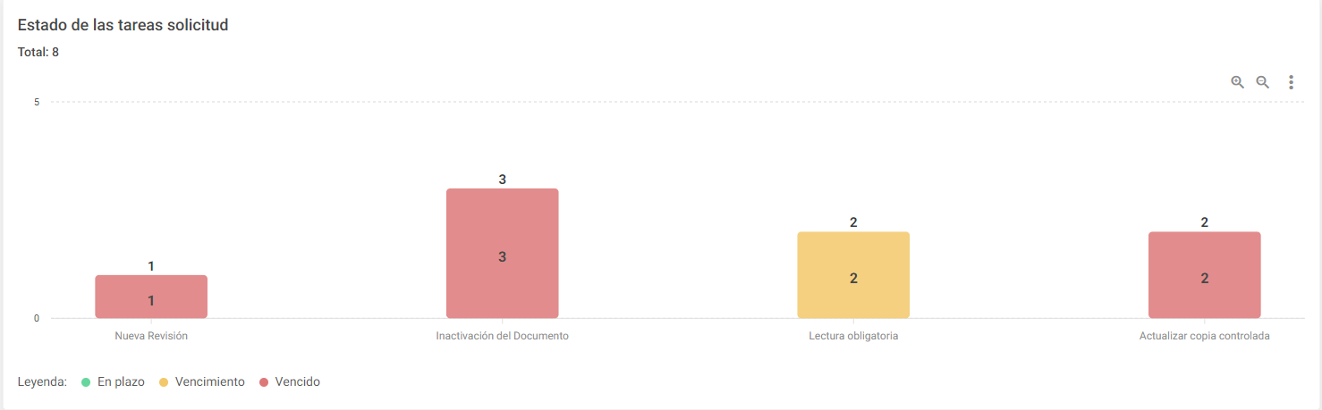 Este gráfico presenta una visión consolidada de las tareas relacionadas con la validación periódica de los documentos, es decir, aquellos que requieren revisión tras cierto tiempo de publicación.