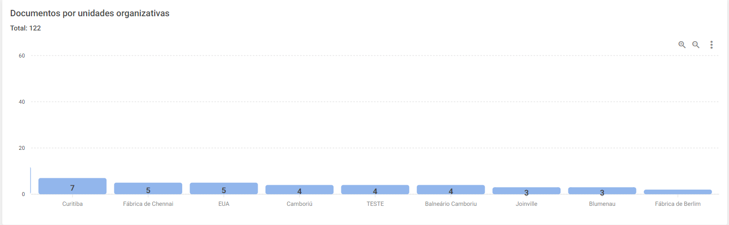 Muestra la cantidad de documentos asignados a cada unidad, como: Matriz, Sucursal SP, Sucursal RJ, etc.