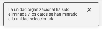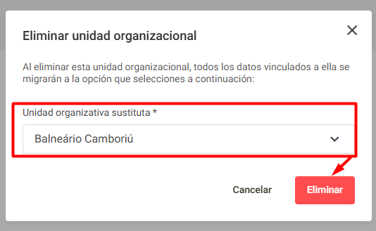 Al hacer clic en Eliminar, el sistema validará la eliminación y realizará la migración de los datos a la Unidad seleccionada: