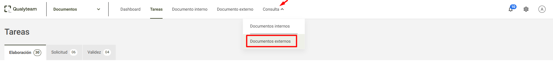 Acceda al menú Consulta, haga clic en Documentos externos, localice y seleccione el documento que desea modificar el registro: