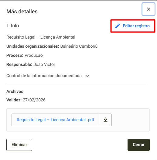 Al hacer clic en el documento en cuestión, basta con hacer clic en la opción Editar registro: