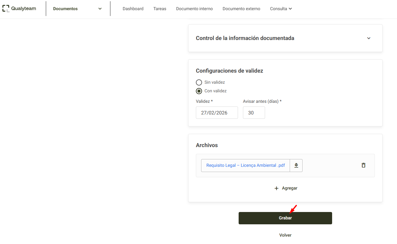 Para modificar el registro del documento externo, siga los pasos a continuación: