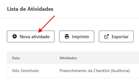 Porém, para cadastrar uma nova atividade, clique no botão Nova atividade