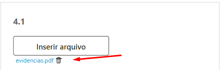 Ao inserir o arquivo o mesmo ficará disponível para consulta. Clique no mesmo para visualizar, ou clique na lixeira para deletar o arquivo, caso tenha inserido errado.