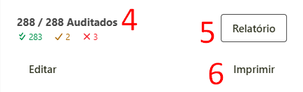 - No final da tela você pode acompanhar a quantidade dos itens auditados, quanto foram atendidos, quantos foram atendidos parcialmente e quantos não foram atendidos.