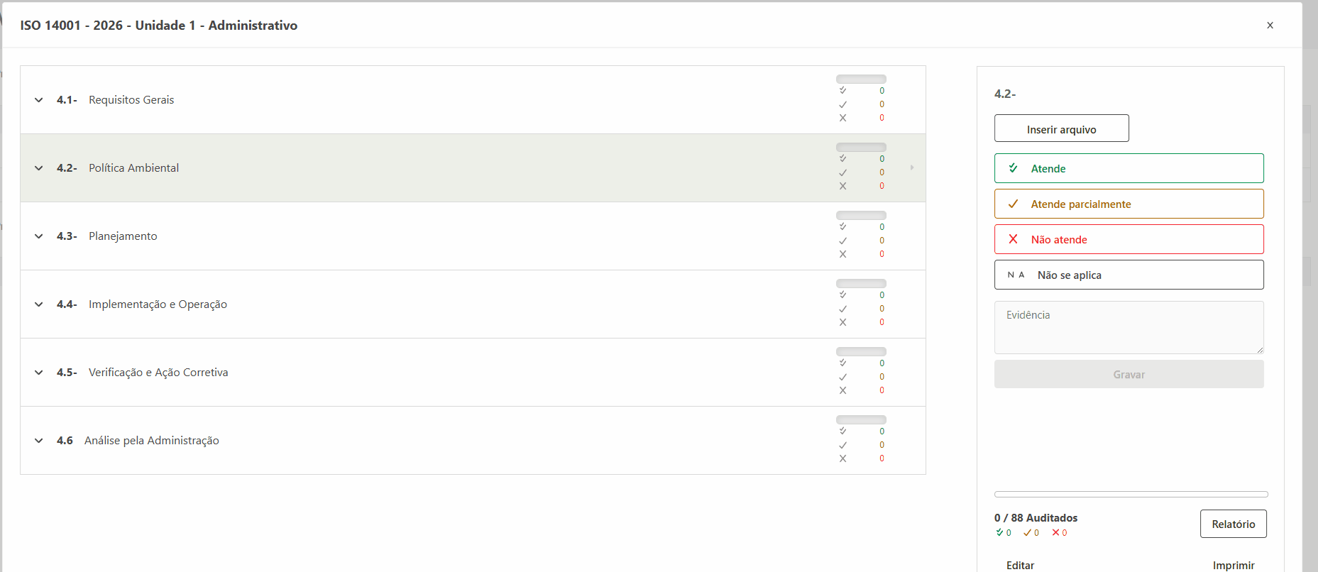 - Na tela que o sistema abrir realize a auditoria de todos os requisitos apresentados na tela.