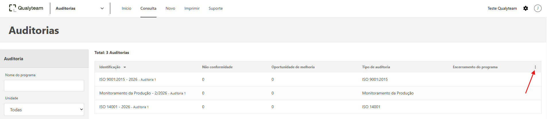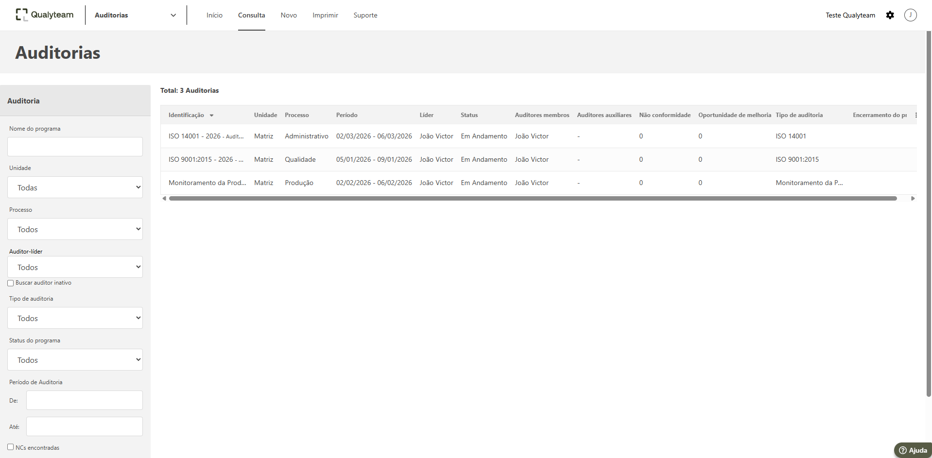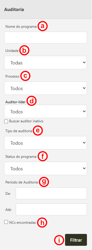 - O campo Auditor-líder, filtra pelo usuário que foi o auditor líder do programa de auditoria.