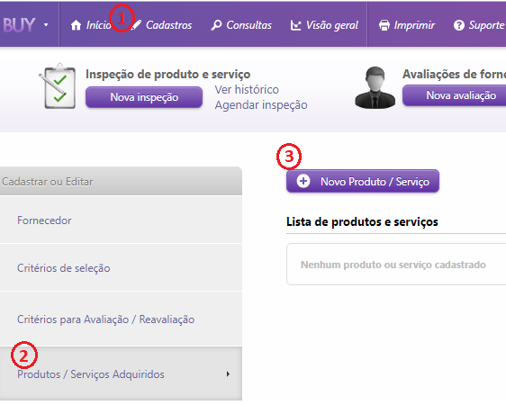 - No menu lateral esquerdo, clique no último item: Produtos/Serviços Adquiridos;