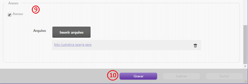 - É possível ainda inserir arquivos relacionados ao produto e/ou serviço em questão, fotos do produto, contrato de prestação do serviço, por exemplo. Para isso, basta marcar a opção Anexo e inserir os arquivos pertinentes.