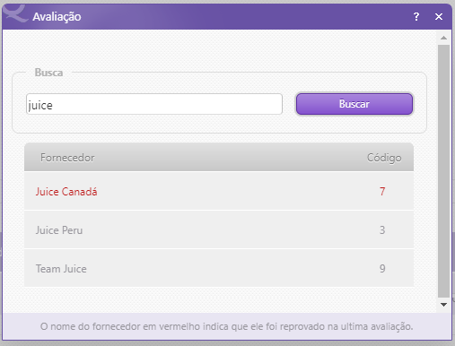 - Na tela que abrir, clique sobre o nome do fornecedor que deseja inspecionar e posteriormente em Buscar.