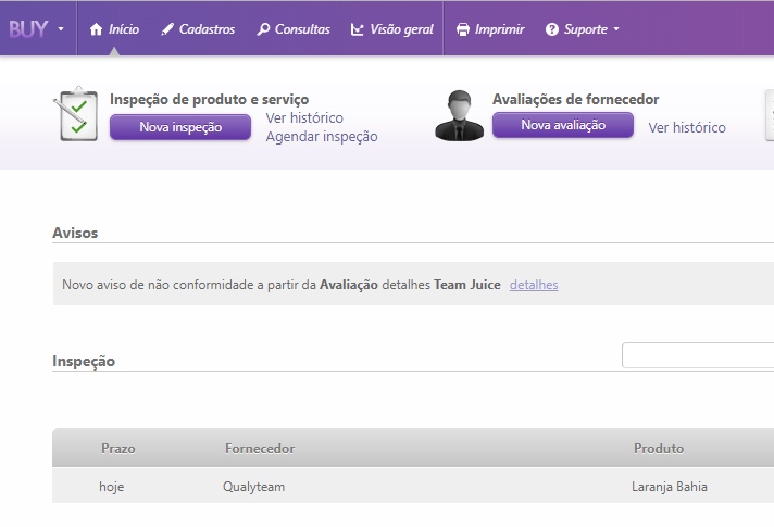 A inspeção de produtos/serviços no BUY tem o objetivo de avaliar o recebimento dos produtos/serviços com bases em critérios pré-estabelecidos pela empresa que foram definidos na tela de cadastro.