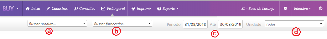 Ao lado dos campos do período, é possível selecionar os dados que aparecerão na tela por Unidade.